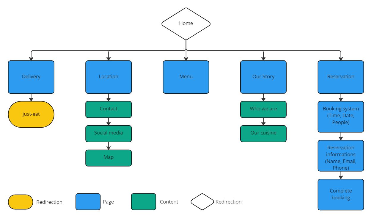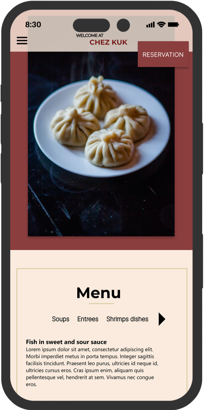 The design of the existing site appears outdated, lacks user-friendliness, photos, and important information. Also, the current site is not optimized for mobile devices, and customers become frustrated when they cannot make reservations by calling outside of the restaurant’s business hours. As a result, the goal of the project was to create a modern design that would attract potential customers.
