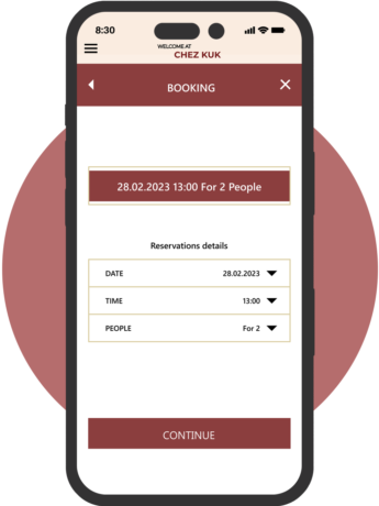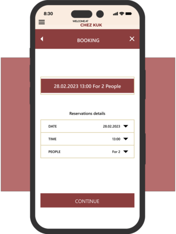I simplify the booking system using drop down menus. I make the button “CONTINUE” bigger and did the final design of the booking page.